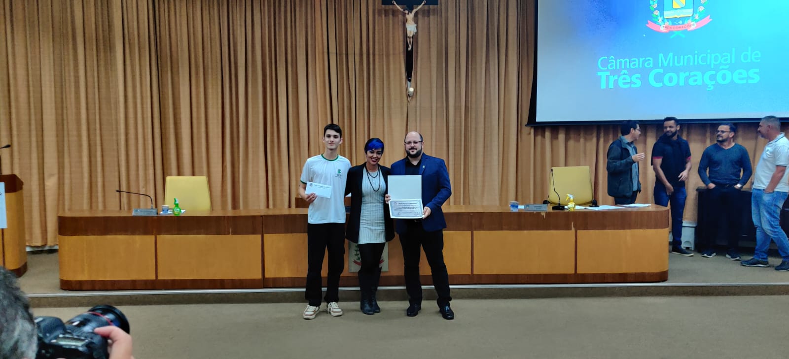 Estiveram presentes na solenidade como representantes do Campus, o diretor-geral, professor Carlos José dos Santos; o estudante e presidente do Grêmio Estudantil, Rafael Andrade; e a professora Aline Morel. Na oportunidade, a professora Aline recebeu uma moção de aplausos pelos projetos desenvolvidos dentro da instituição na área de empreendedorismo e inovação.